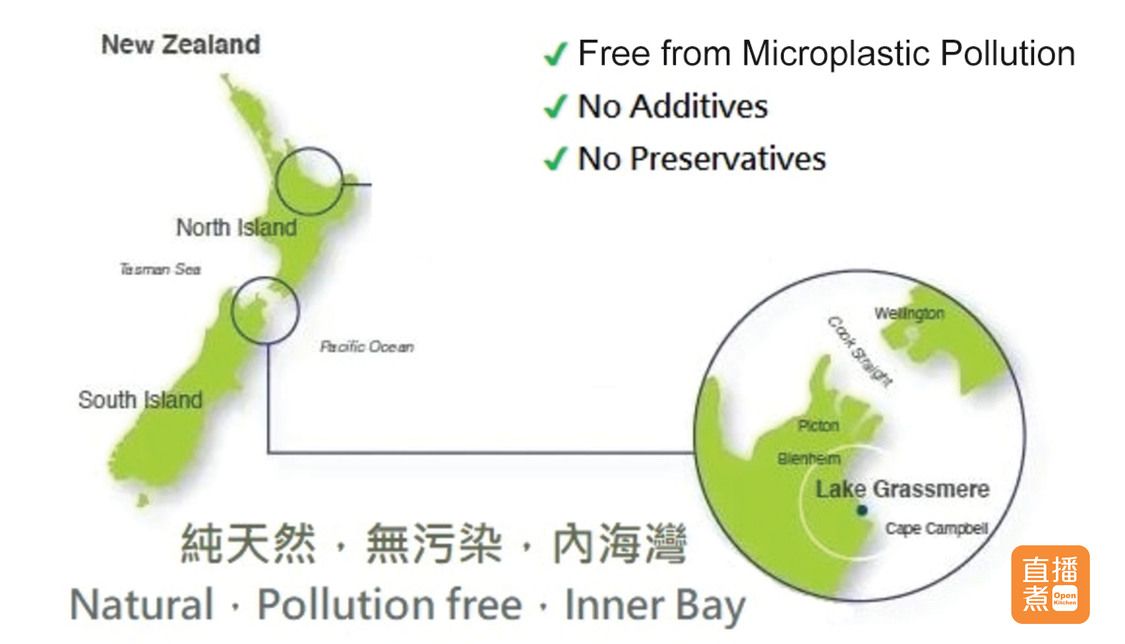 來自新西蘭南島瑪爾堡的無塑膠粒海域、令海鹽保持高純度,含豐富天然礦物質:鈣、鉀、鐵等無雜質污染,衛生可靠。