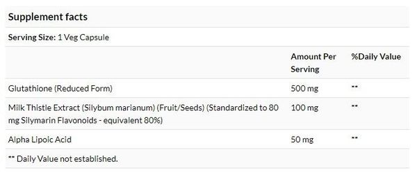 穀胱甘肽是一種小胜肽分子,由三種胺基酸組成:半胱氨酸、谷氨酸和甘氨酸。 它是由身體的每個細胞產生,在肝臟中含量尤其高。 穀胱甘肽對於健康的免疫系統功能至關重要,是正確的排毒過程所必需的,並支持健康的衰老。 它還透過直接中和自由基以及維持維生素 C 和 E 的活性,在維持細胞健康方面發揮關鍵作用。水飛薊萃取物和 α 硫辛酸作為補充成分。
