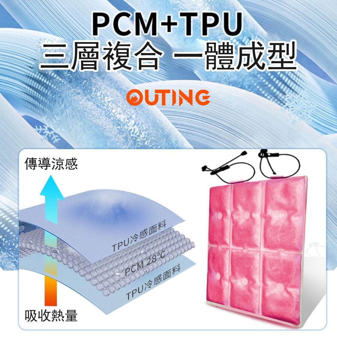 OUTING-PCM降溫背包冰墊│可重複使用降溫冰袋│夏季背部涼爽神器│夏天必備