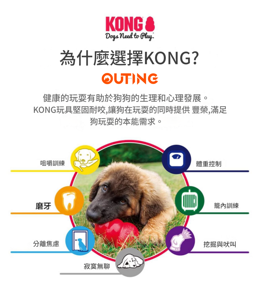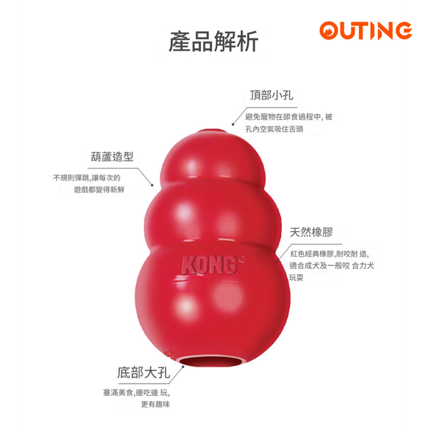 OUTING-KONG 狗狗漏食葫蘆不倒翁玩具(紅色│中碼)│美國品牌漏食益智玩具│幼犬成犬訓練│互動解悶│無毒無害│洗碗機熱水清洗