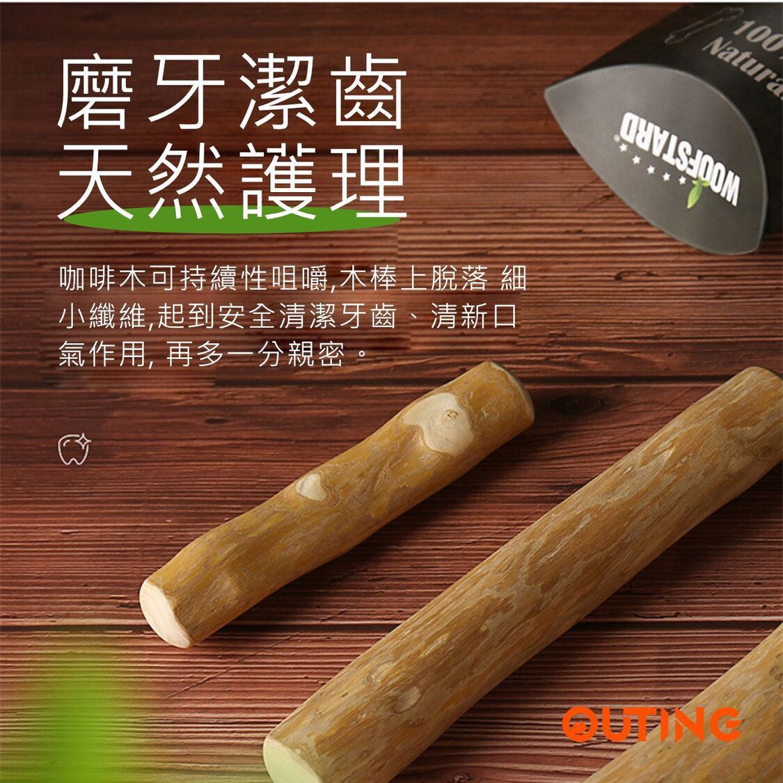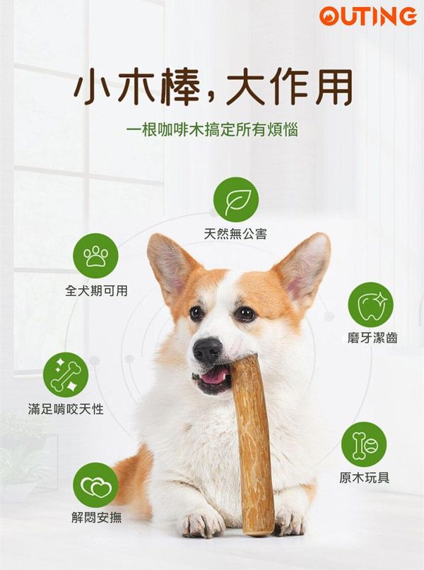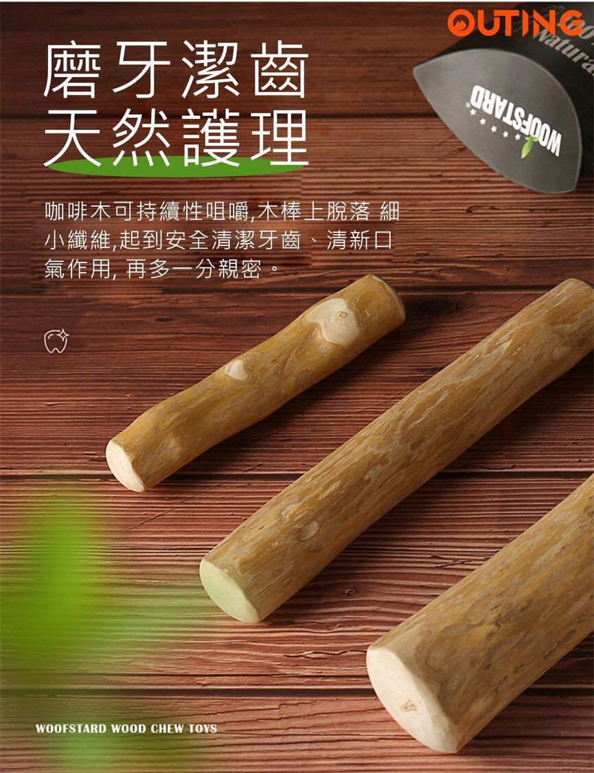 OUTING-Woofstard 咖啡木磨牙棒潔齒骨(小號)│狗狗零食咬膠│潔齒解悶玩具│天然潔齒骨