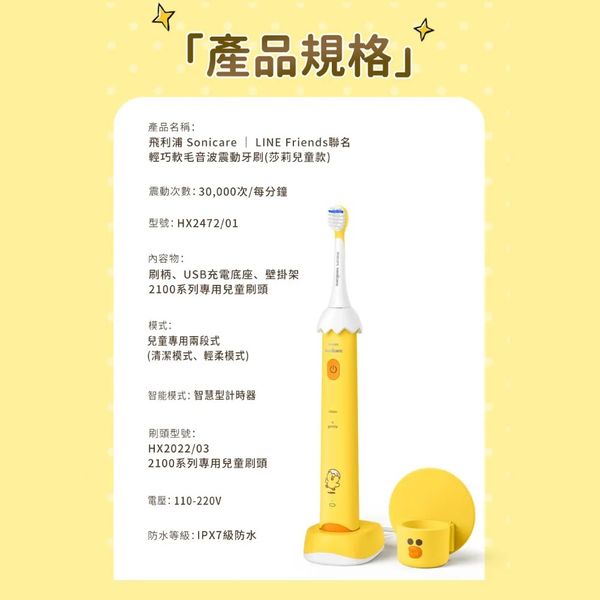 Philips 飛利浦-SONICARE x LINE FRIENDS 兒童軟毛音波電動牙刷限定套裝 - 莎莉 (平行進口)