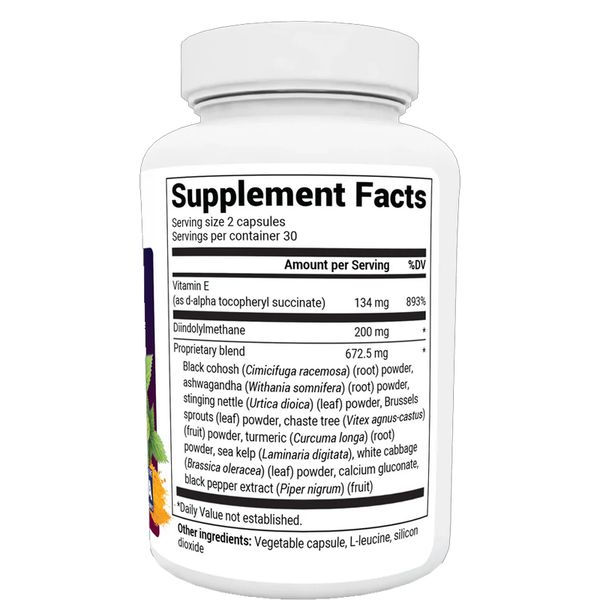 專有混合物,241 毫克。有機凍乾甜菜(根)、有機凍乾球芽甘藍(芽)、有機凍乾羽衣甘藍(葉)、有機凍乾蘆筍(莖和莖)、有機凍乾 羽衣甘藍(葉)、有機凍乾歐芹(葉)、有機凍乾紅蘿蔔(根)、有機凍乾捲心菜(葉)、有機凍乾大蒜(鱗莖)、有機凍乾薑黃(根和 根莖)、有機凍乾海帶粉。二吲哚基甲烷(DIM)200 mg。Bioperine(黑胡椒提取物)(Piper nigrum)(標準化為含有 95% 胡椒鹼),其他成分:植物膠囊、微晶纖維素、二氧化矽、鎂 硬脂酸鹽(植物來源)