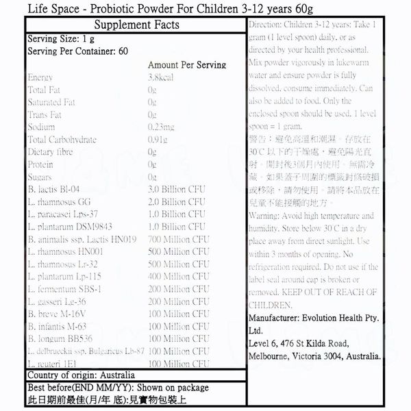 3-12歲兒童:每日服用1克(1平勺),或謹遵醫囑。將粉末加入溫水,混合搖勻,確保粉末完全溶解後立即食用。也可加入食物中。只能使用附帶的勺子。