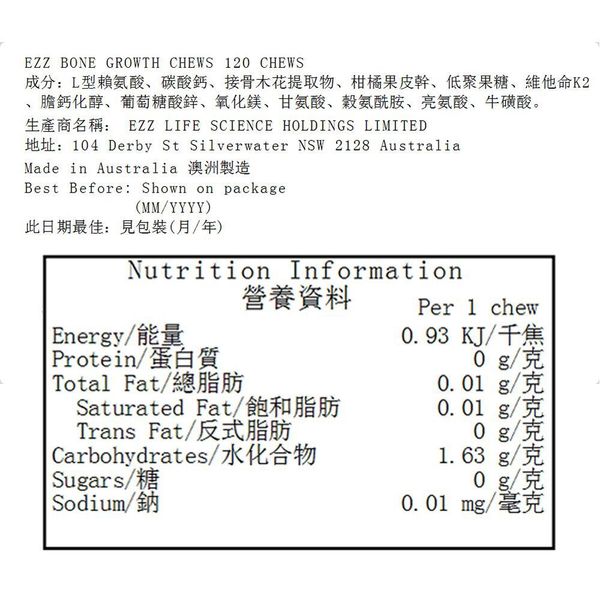 鈣(來自碳酸鈣 150 毫克)60 毫克