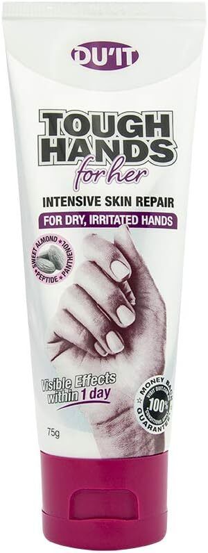 DU'IT Tough Hands for Her 護手霜是一款經過臨床測試的抗衰老護手霜,適合疲憊、過度勞累的雙手。它可以修復乾燥、乾裂、繭和受刺激的皮膚,使暗淡的雙手恢復光澤。 它含有強大的勝肽複合物,可支持天然膠原蛋白並軟化細紋和皺紋,泛醇可緊緻並改善皮膚彈性,煙酰胺可增加皮膚光澤 澳洲擁有和製造
