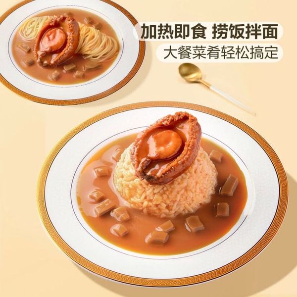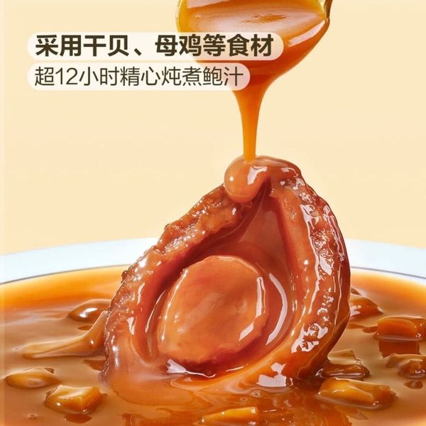 精選5頭鮑,打撈3小時內熟制 鮑汁熬煮12小時,肉質飽滿,緊實彈牙 可撈飯/麵食用 食用方法:水煮 / 微波爐 加熱即可食用