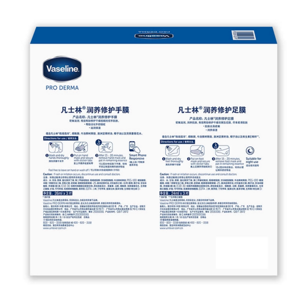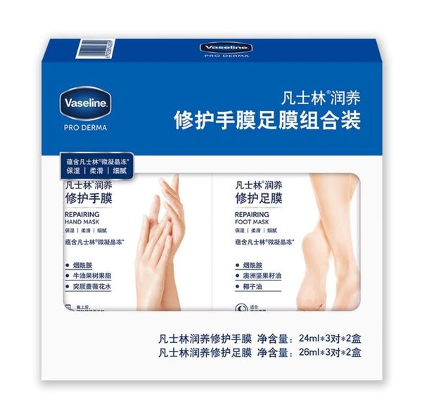 Vaseline-凡士林 潤養修護手膜足膜組合套裝(手膜 24ml*3對*2盒 + 足膜26ml*3對*2盒)平行進口