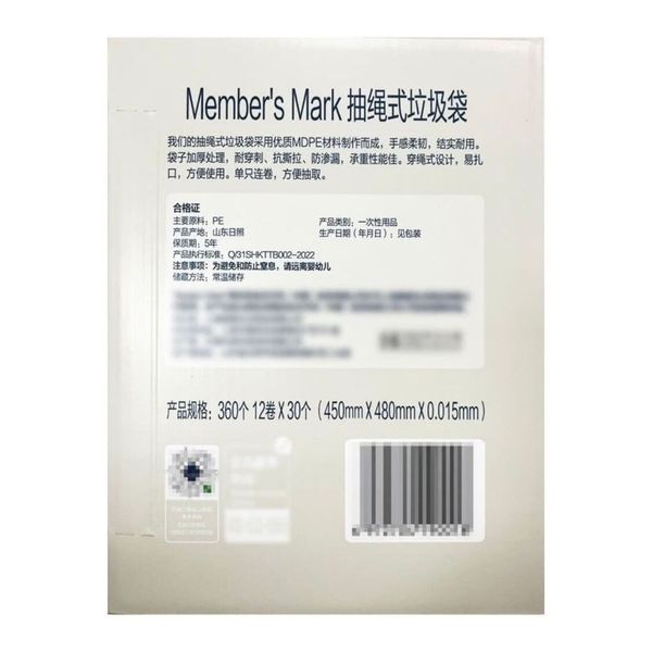 Member's Mark-山姆會員商店 - 抽繩式垃圾袋 20L 360個 (12卷*30個) 平行進口