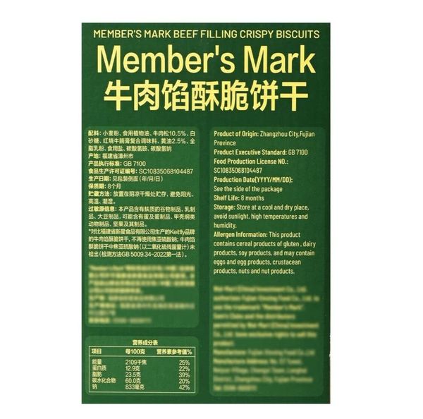Member's Mark-山姆會員商店 - 牛肉餡酥脆餅乾1kg 平行進口