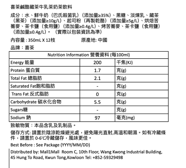 喜茶-喜茶 鹹酪藏茶牛乳茶奶茶飲料350mL*12枝 平行進口 (此日期前最佳:2026-05-03)