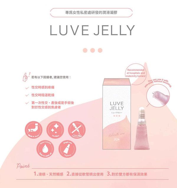 您是否有過性交時感到疼痛、因難以濕潤而使性交變得痛苦或對初次性交或生產後/手術後感到擔憂的經驗?大約有74%的人感到疼痛或不適。這些大多數被認為是由於插入時的“缺乏濕潤”所導致,原因多種多樣,如壓力、緊張、產後荷爾蒙失衡。為了照顧這種性交不適,推出了一種可以溫柔地照顧的潤滑凝膠。只需旋轉噴嘴並擠壓管子,凝膠就可以從四個孔均勻地擠出,使其能夠均勻塗抹到所需的區域。這潤滑凝膠的特點包括:從容器中取出時,它是易於處理的凝膠狀態,使用後感覺光滑,而且提供了自然的感覺,感覺光滑卻不會太滑。此凝膠專為那些由於乾燥而對性交有所猶豫的人設計,與市售的身體乳液有所不同。有些市售的身體乳液存在用水難以洗掉、太滑、或可能想要避免用於粘膜的成分的問題,使人擔心其使用感覺和安全性。為了安全性和清潔度,這潤滑凝膠通過消毒,極大地減少了防腐劑的使用量,而且即使吞下也是無害的;由於是水溶性的,因此不會感到黏膩,使用後可以用清水或溫水輕鬆沖洗。1982年,日本家庭計劃協會醫學委員會和Jex共同開發了日本的首款潤滑凝膠,它在醫學領域,包括婦產科中,也得到了推薦,已有超過1000萬人使用。