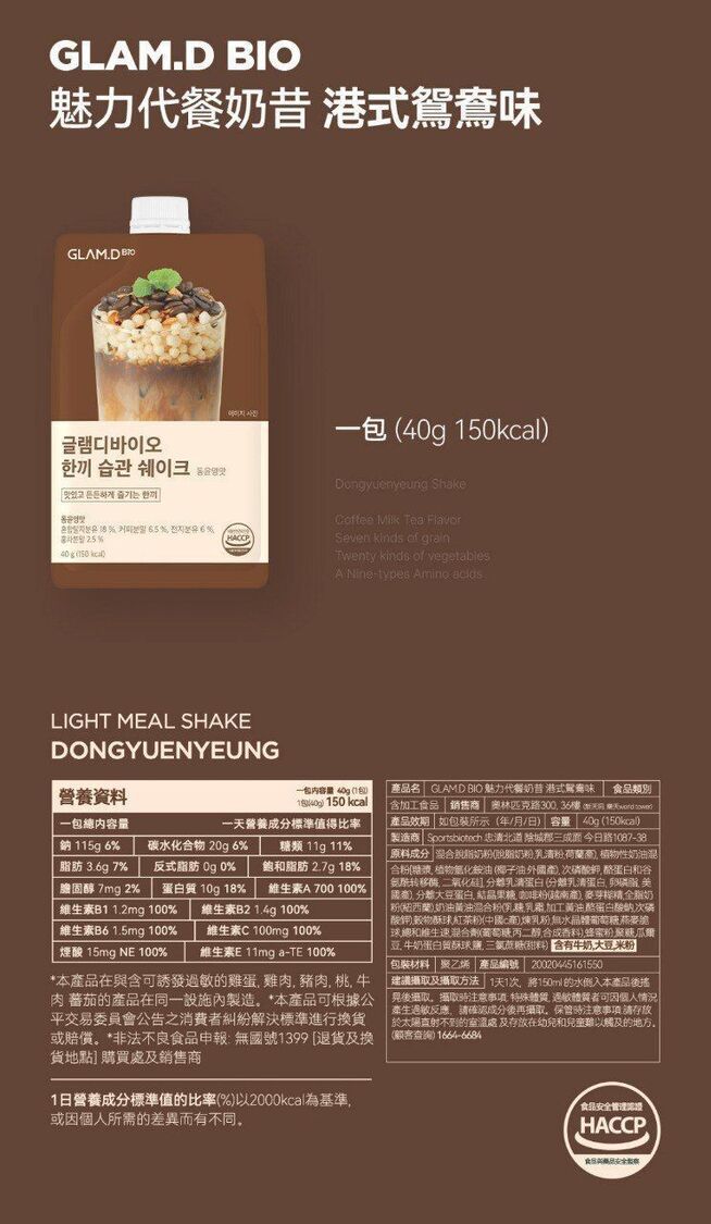 GLAM.D-【5包】GLAM.D - Glam.D Bio魅力代餐奶昔-港式鴛鴦味 1包 40g [平行進口]8809960356231_5 EXP.2026.12.12