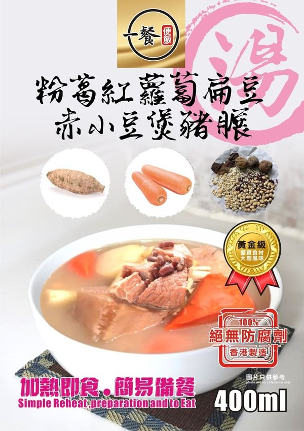 一餐便飯-粉葛紅蘿蔔扁豆赤小豆煲豬展湯(400ml )(急凍-18°C)#加熱即飲湯包 #老火湯