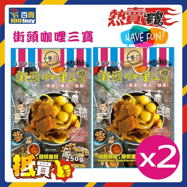 一餐便飯-街頭咖哩三寶 (250g) X2 (2包優惠裝) (急凍-18°C)#車仔麵、#豬皮、#咖喱魷魚、#蘿蔔、#魚蛋 #懷舊小食 #香港味道 #香港製造 #宵夜
