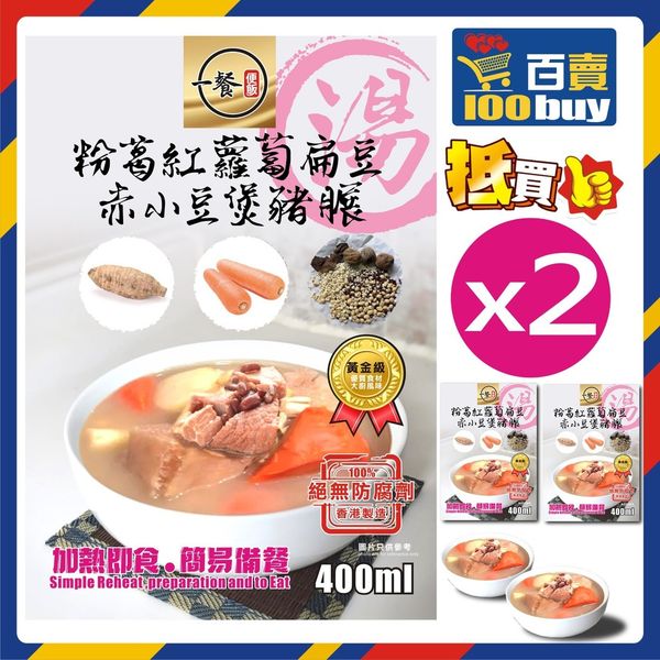 一餐便飯-粉葛紅蘿蔔扁豆赤小豆煲豬展湯(400ml ) X2 (急凍-18°C)#加熱即飲湯包 #老火湯
