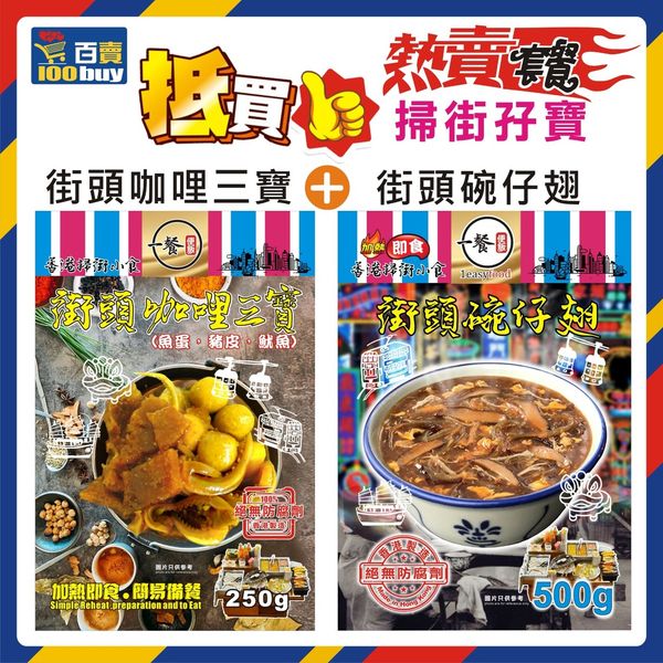 一餐便飯-小食套餐 街頭咖喱三寶(250g)+街頭碗仔翅(500g) (急凍-18°C) #車仔麵、#豬皮、#咖喱魷魚、#蘿蔔、#魚蛋 #懷舊小食 #香港味道 #香港製造 #宵夜