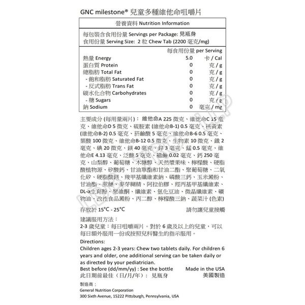 使用美味的 GNC Milestones® 兒童綜合維生素咀嚼片,支持您的孩子度過每一個里程碑! 我們的兒童綜合維生素咀嚼片採用 20 種必需營養素配製而成,可支持您孩子的整體健康和發育、眼睛健康、強健骨骼和牙齒、免疫健康和能量產生。*