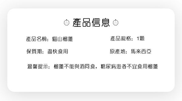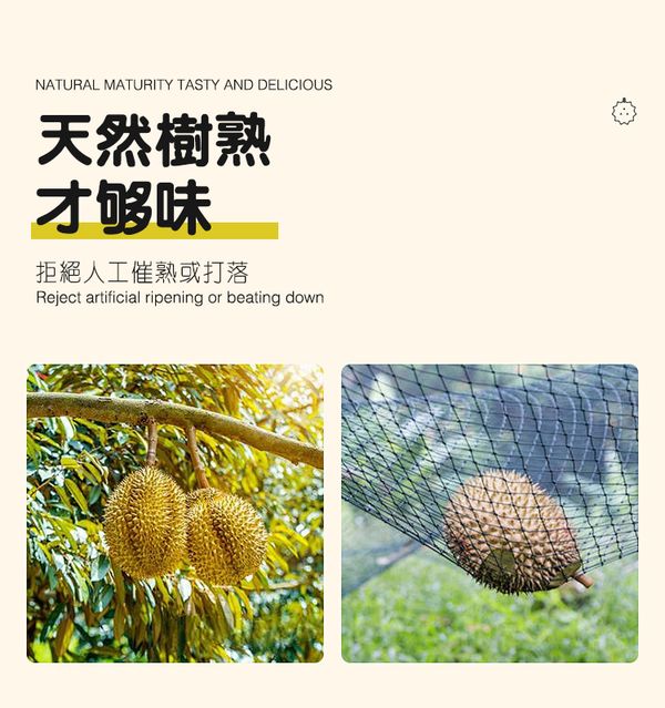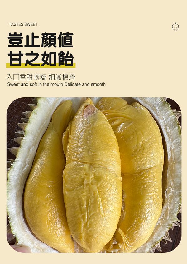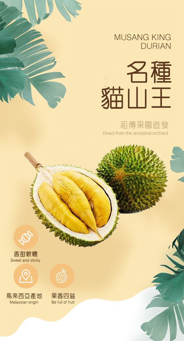 馬來西亞柔佛州永平南利果園名種貓山王榴蓮,產地直發到家,其果天然樹熟而落,味道非常濃郁,口感苦甘,果肉濕包。榴蓮口感天花板,果肉細膩如凝脂般,第一口有點苦,入口即化有滑似奶脂的滑糯,而後就慢慢綿長回甘,吃起來很自然的甜,由苦至甜,苦後回甘。10KG起订,当天下单隔日到货。