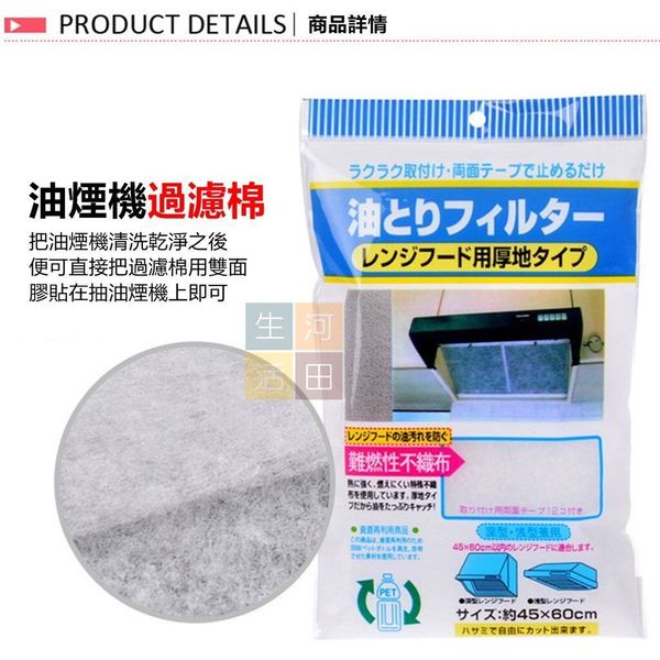 河田生活-日式家居抽油煙機過濾網棉 |油煙過濾網 |廚房油濾紙 |透明吸油紙