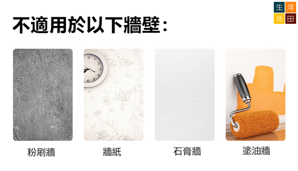 •不適用於以下牆壁:粉刷牆、塗油牆及牆紙等