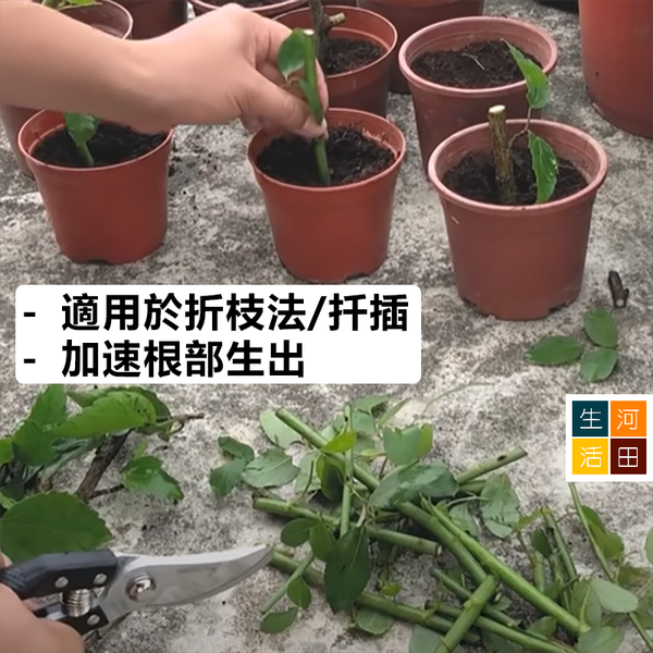 有效促進強壯的主根生長 使更多側根生出,形成一個巨大的根系 適用於折枝/扦插/移植法,有效提高存活率