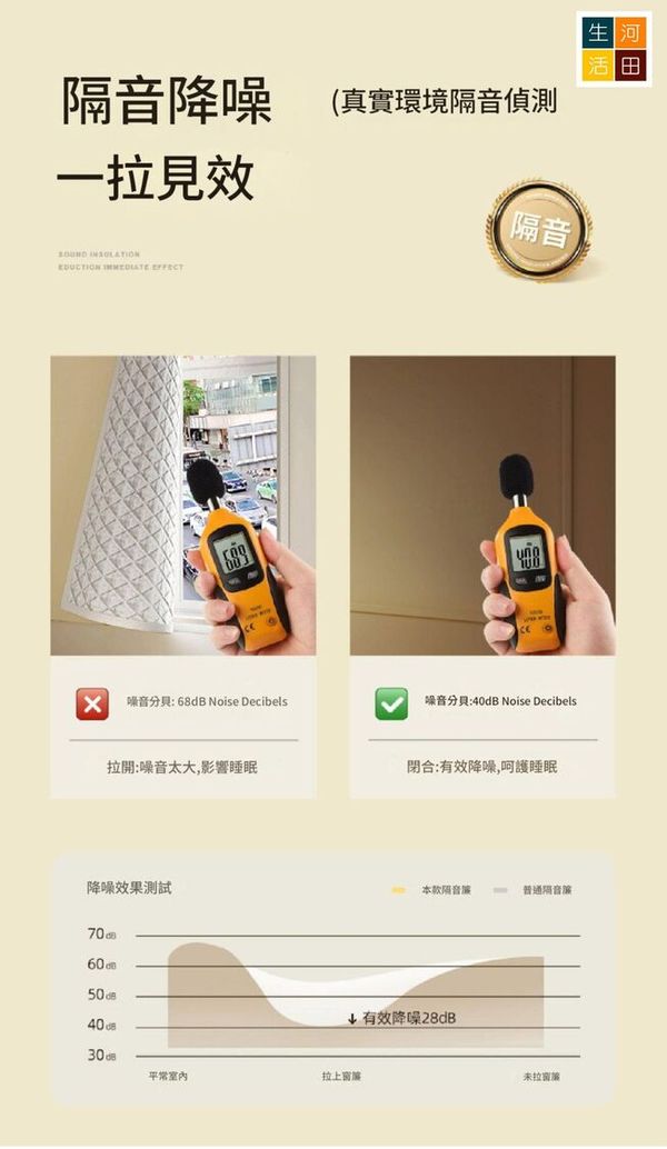 河田生活-魔術貼隔音簾(90*120cm)│遮光隔音窗簾│三層加厚隔音│貼合式隔音簾│降噪遮陽