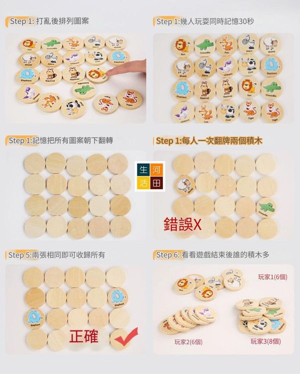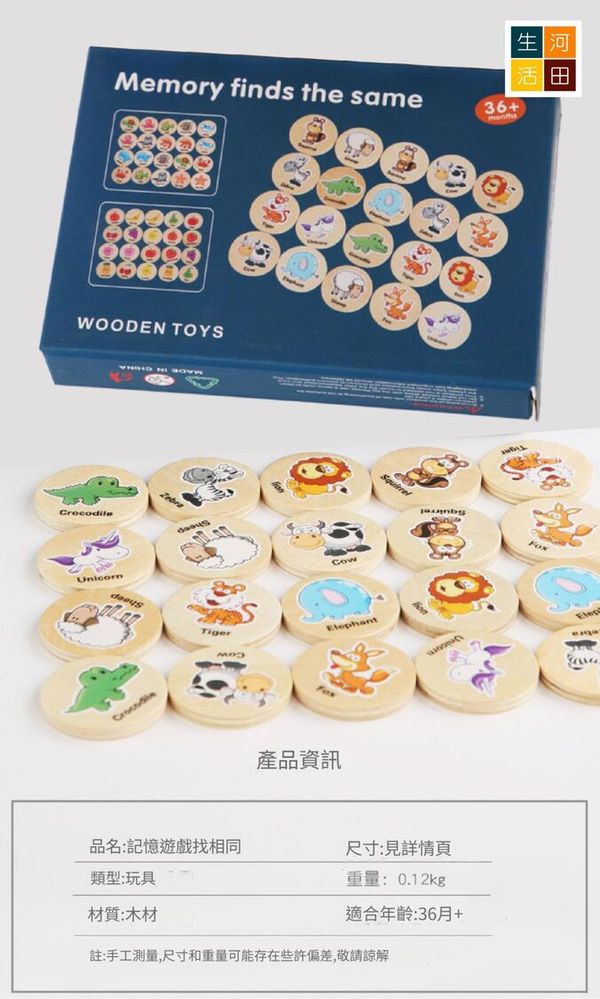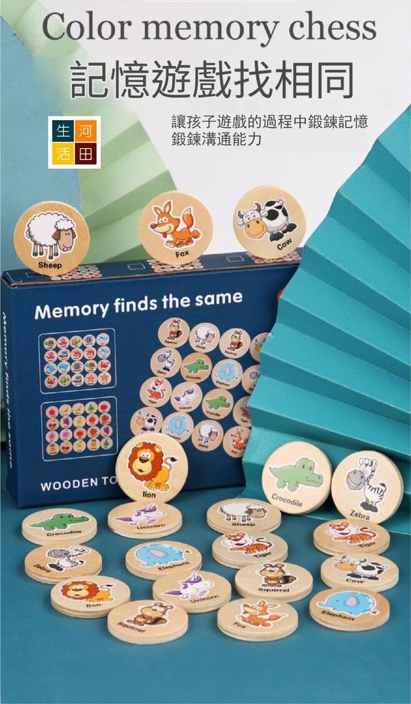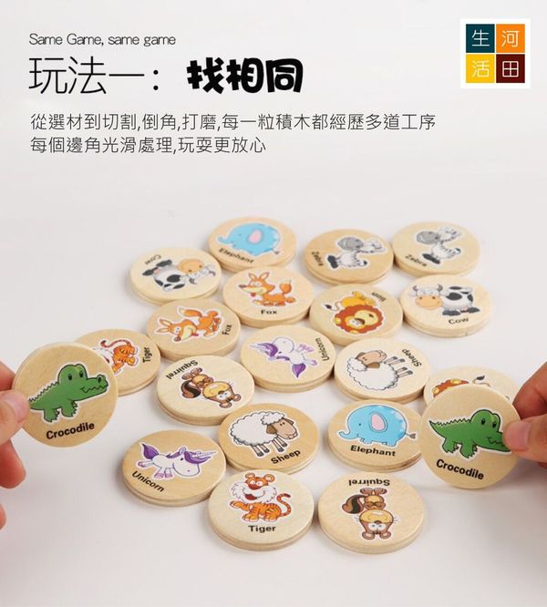 河田生活-找相同記憶遊戲(森林動物)|幼兒早教玩具|益智卡通思維記憶棋|專注力訓練|記憶力訓練|木質教具