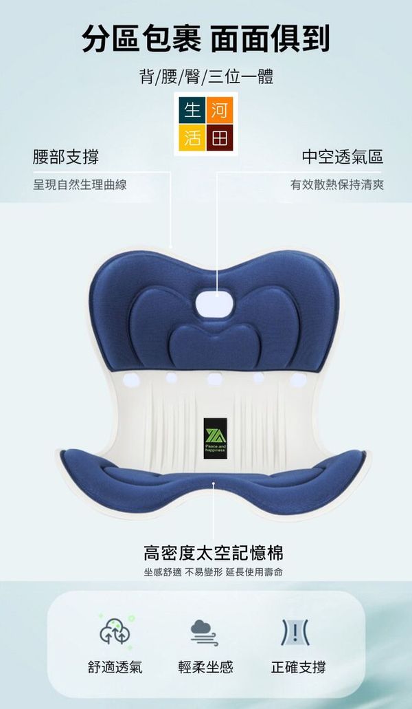 暢銷日本專業級矯正姿態坐墊,旨在幫助防止駝背並舒緩壓力。可以用在椅子、沙發或甚至地板上。