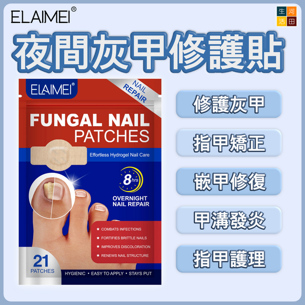 ELAIMEI-夜間灰甲修護貼(21片) | 指甲修復矯正 嵌甲 甲溝發炎 護甲 | 腳指甲真菌護理貼
