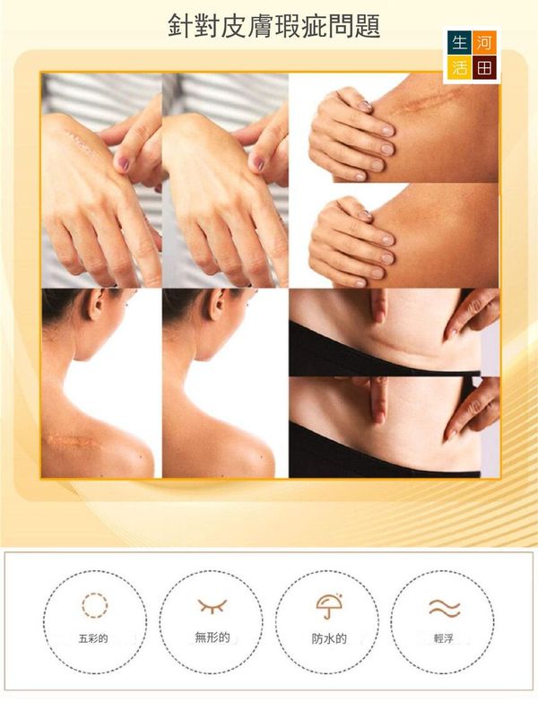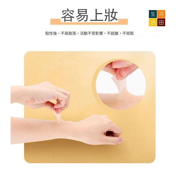 🌟 防水防汗,透氣舒適 🌟 隱形設計,完美遮蓋各類疤痕、紋身等 🌟 黏性強,不易脫落,不起皺、不斑駁,不受活動影響 🌟 可按需要隨意剪貼,適用於多個部位,快速遮瑕 🌟 多種膚色選擇,避免色差 產地:中國