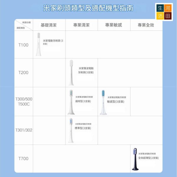 河田生活-小米聲波電動牙刷頭 (3支裝)(T301/T302 標準型│平行進口)│牙刷頭替換裝│無銹無金屬刷頭
