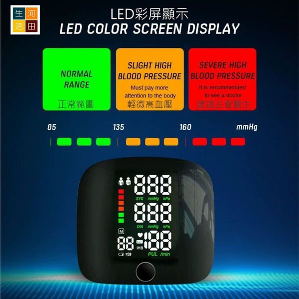 河田生活-全自動電子血壓計│電子血壓監測器│便攜式血壓計│三秒快速測量│智能血壓計