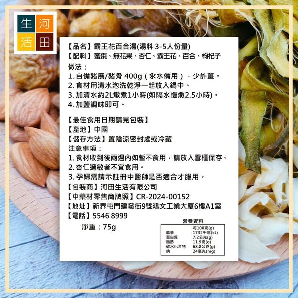 【品名】霸王花百合湯 (湯料 3-5人份量)