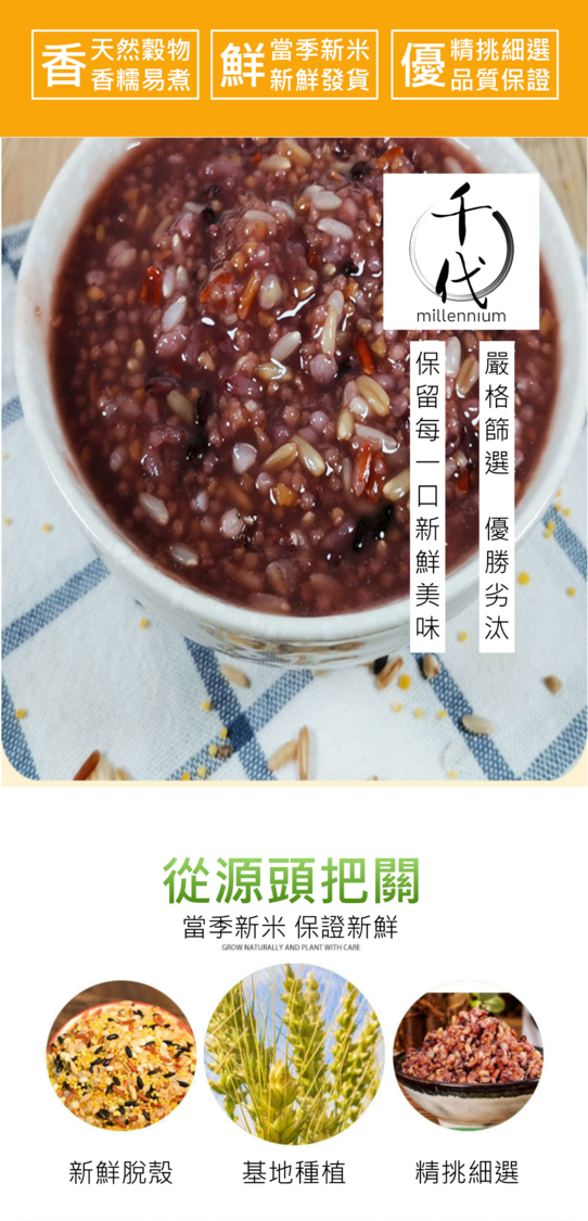 🌟 十色米包括:黃小米、大麥米、糯米、黑米、糙米、蕎麥米、大黃米、燕麥米、高樑米、玉米碴 🌟 含各種糧食的營養素,如膳食纖維、維生素、礦物質和蛋白質,有助於達到均衡的營養攝取,有助腸道蠕動及心臟健康 🌟 屬低熱量有助控制體重 🌟 品質優選,乾淨無雜質,不含任何染色素或添加劑 🌟 真空包裝,不易受潮 產地:中國 重量:500G