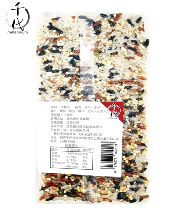 🌟 八寶米有黑米、小米、麥仁、糙米、綠豆、糯米、紅米、小西米、紅豆、燕麥米 🌟 具清熱潤肺、寧心爽神、營養保健之功效 🌟 品質優選,乾淨無雜質,不含任何染色素或添加劑 🌟 真空包裝,不易受潮 八寶粥煮法: 把150G八寶米洗淨後,加入1.3L清水,以電飯煲煮約90分鐘即可 產地:中國 重量:500G