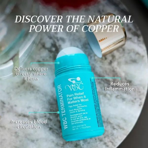 WBC Terminator 的強而有效冷卻緩解疼痛效果,這是一款外用滾動自然止痛霜。為了製作這款優質且易於塗抹的, 將薄荷醇和純精油與革命性銅配方混合在一起。使用 WBC Terminator,您將獲得快速且持久的效果。注入薄荷醇、樟腦、銅和精油,旨在舒緩酸痛的肌肉、扭傷、拉傷以及頸部和背部疼痛。