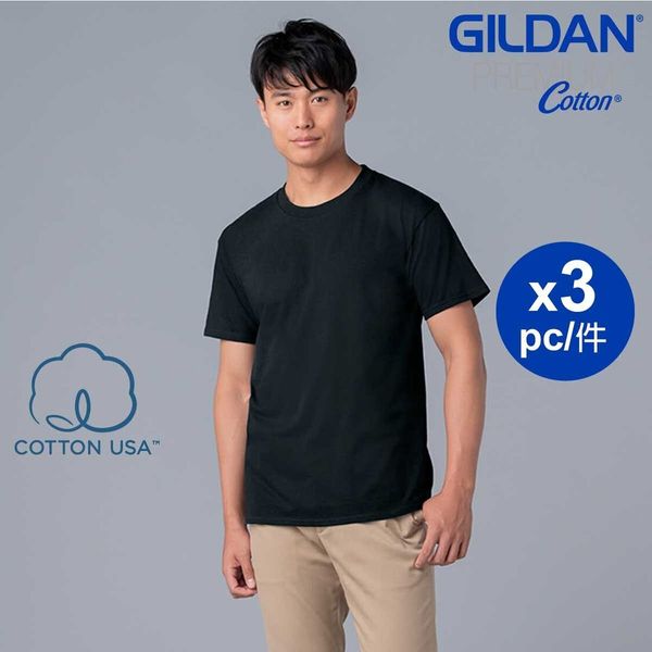 GILDAN-Premium Cotton 美國純棉圓筒短袖T恤 (3件) - 黑色 S