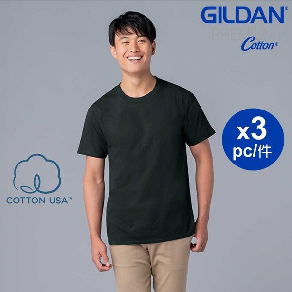GILDAN-Premium Cotton 美國純棉圓筒短袖T恤 (3件) - 黑色 XS
