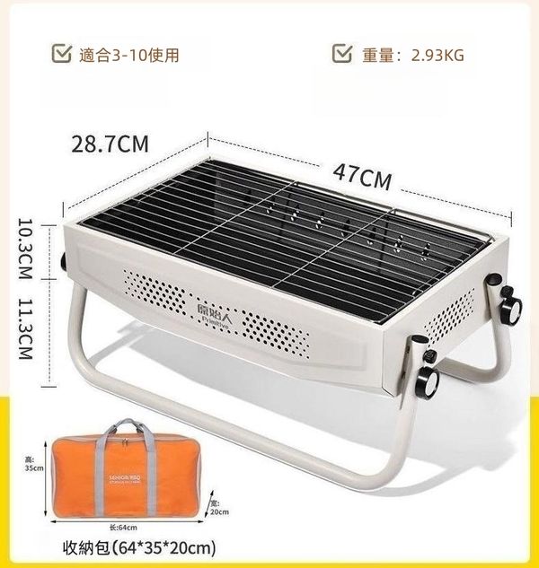新款燒烤爐 家用摺疊便攜式烤肉架 戶外木炭碳烤爐架 燒烤架 白色 配收納袋