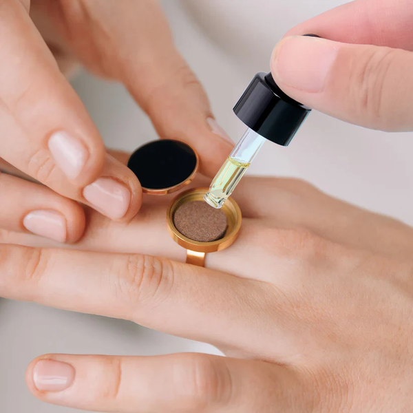 1. 將吊墜蓋擰開, 然後拿出鎖香石, 將適量精油/香水滴於鎖香石內, 當鎖香石吸收後放回吊墜內, 然後再約蓋擰好.