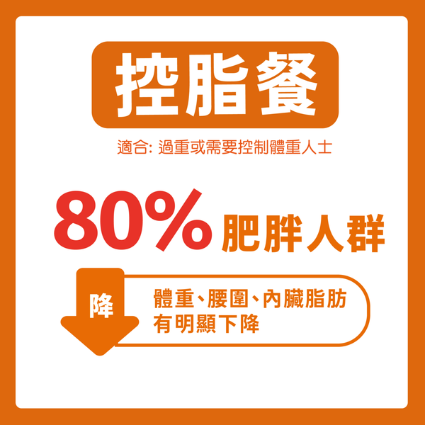 80% 肥胖患者,經過3個月低脂膳食管理後,體重、腰圍、內臟脂肪有明顯下降。以一位身高160cm,體重75kg的女/男性為例,能減去18-22公斤左右,若是男性則能減掉22-28公斤左右*