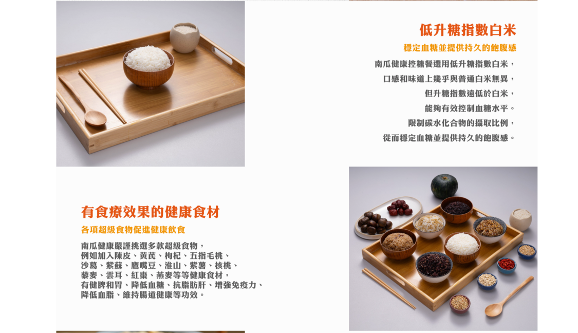 - 粗糧代替主食,包括藜麥黑米香芋飯、紅棗核桃糙米飯、燕麥蕎麥仁黑米飯等