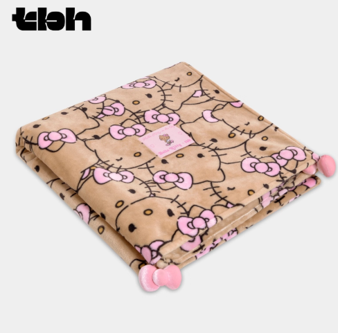 【預訂,1星期到港】Hello Kitty x tbh 黑皮 150cm x 200cm 毛毯
