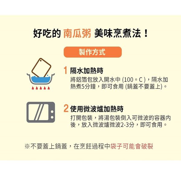 這款粥選用南瓜、純水、α-糯米粉和甜南瓜醬等天然食材製成,
