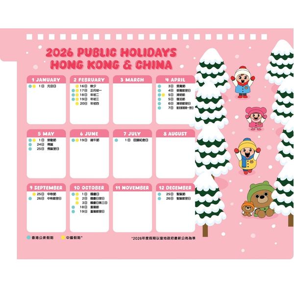 SHO-CHAN-小燦|2026年座檯月曆 年曆 日曆 |燦子(香港假期)
