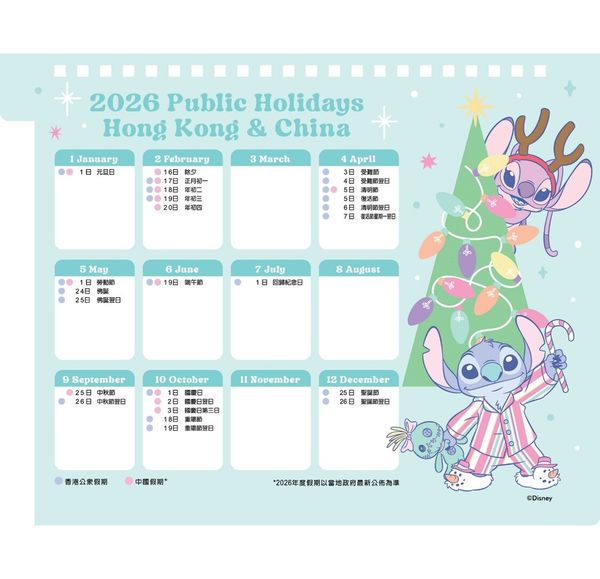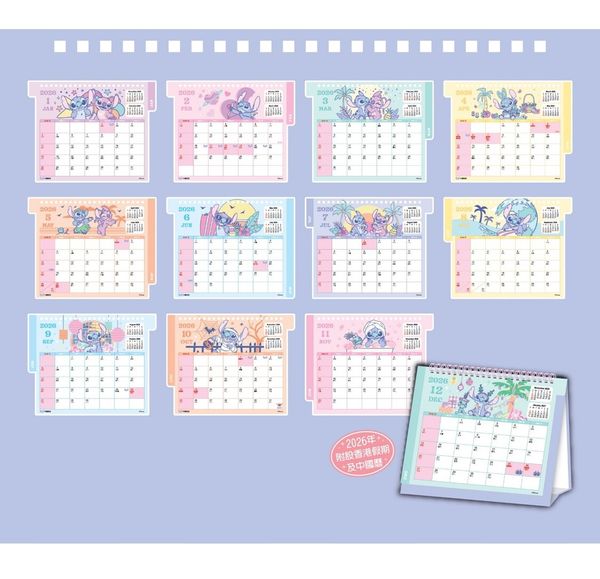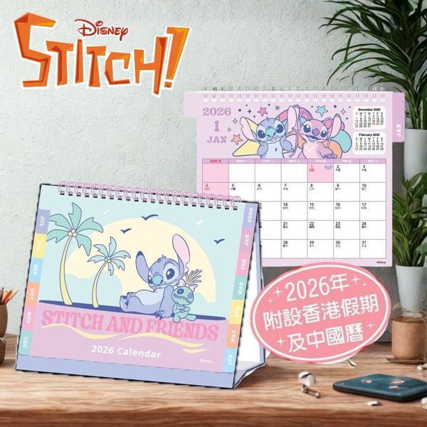 史迪仔-2026年座檯月曆 年曆 日曆 香港假期(迪士尼許可產品)