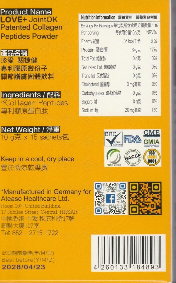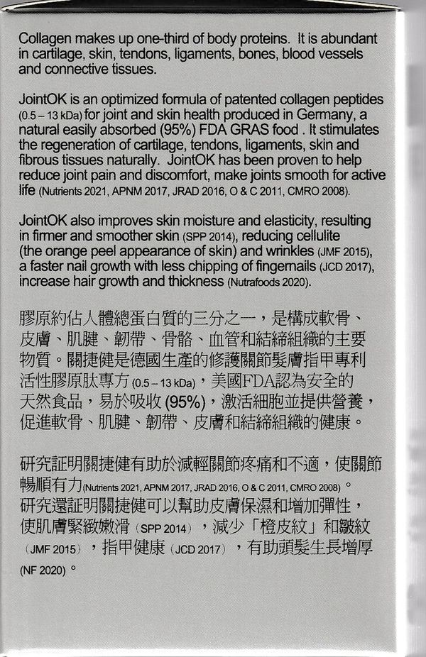 關捷健® 是100%德國研製的專利活性膠原蛋白肽微份子專方,
