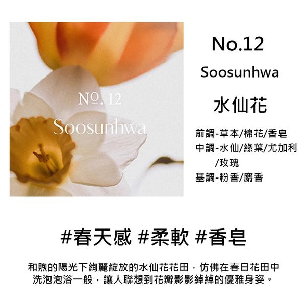 清新溫和的水仙香氣與皂香完美融合。