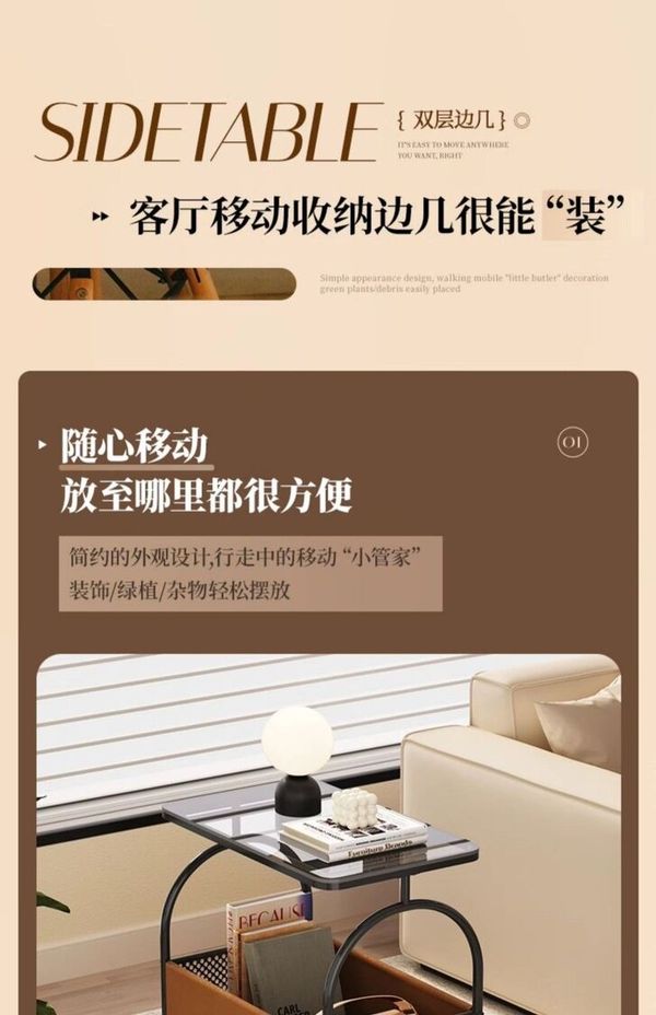 沙發邊幾梳化可移動茶几小推車帶輪簡約現代床頭邊桌客廳創意sofa置物架